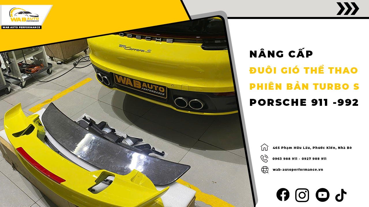 Với kính nghiệm đã nâng cấp thành công cho nhiều dòng xe Porsche 911 mẫu đuôi gió thể thao Porsche 911 Turbo S. WAB Auto Performance chắc chắn là đơn vị hoàn hảo để khách hàng gửi gắm xế yêu của mình.